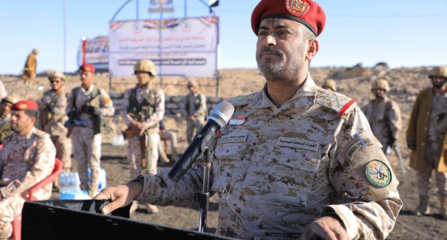 رئيس هيئة الأركان العامة قائد العمليات المشتركة الفريق الركن صغير بن عزيز، خلال حضوره، فعاليات اختتام العام التدريبي وتخرج دفعة صاعقة من منتسبي وحدات الاحتياط بمحافظة مأرب، قال: "نحن قادمون على معركة، وهي المعركة التي ستخلص شعبنا وبلدنا من تنظيم جماعة الحوثي الإرهابية المدعومة من إيران".