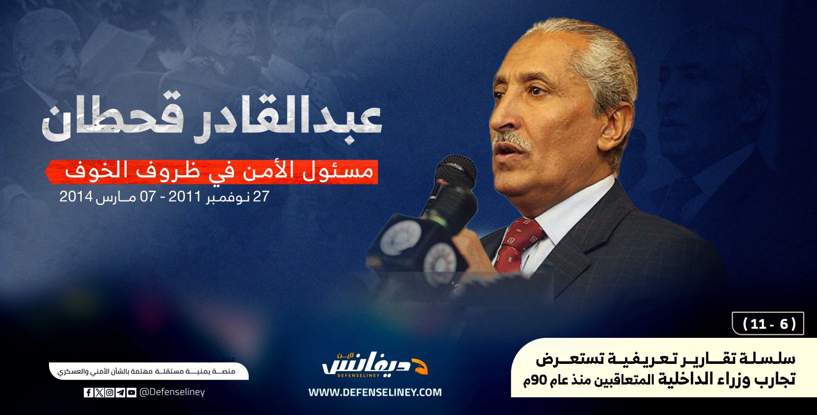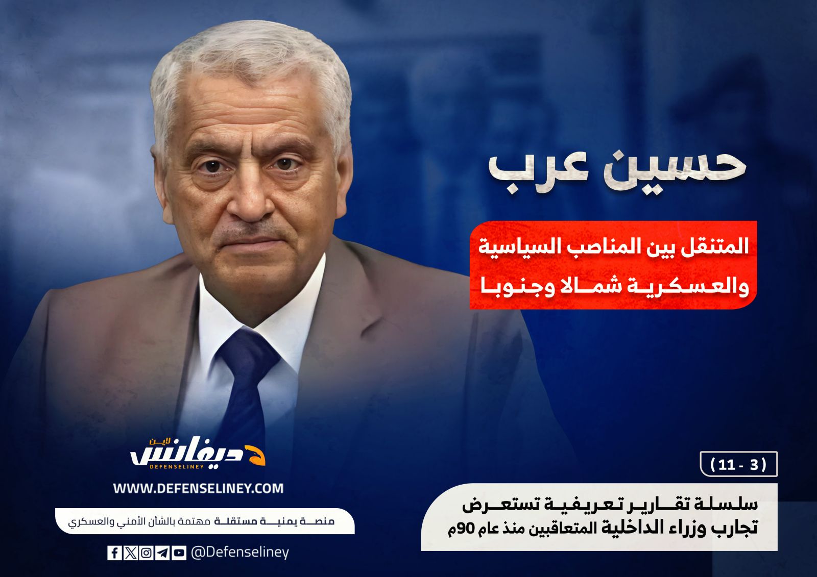 يستعرض هذا التقرير الخاص بموقع "ديفانس لاين" تجارب وزراء الداخلية في اليمن الذين تعاقبوا على المنصب خلال 34 عاما من عمر الجمهورية اليمنية، وملامح من ظروف تعيينهم وتجاربهم الأمنية وطرفا من سجلاتهم المهنية والعلمية.