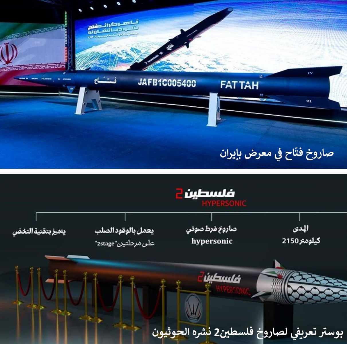 صاروخ فلسطين بنسختيه، هي في الأساس تتطابق في ميزاتها مع الصاروخ الإيراني "فتّاح"، بنسختيه، فتّاح1، أعلنت عنه إيران في نوفمبر 2023م وهو أول صاروخ باليستي إيراني تفوق سرعته سرعة الصوت. وفتّاح 2، أعلنت عنه القوة الجو فضائية التابعة للحرس الثوري لأول مرة، يوم الأحد 19 نوفمبر.