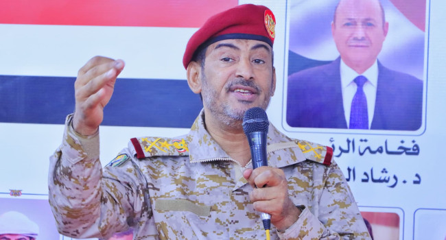 وجدد العميد بن راسية، العهد والولاء للقيادة السياسية والعسكرية حتى تحرير كل تراب الوطن من تنظيم جماعة الحوثي الإرهابية المدعومة من إيران.